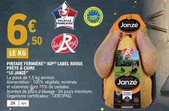 Offre LE JANZÉ Pintade fermière igp label rouge prête à cuire chez E.Leclerc