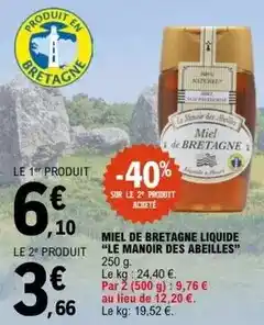 Actuellement en offre chez E.Leclerc : Le manoir des abeilles - miel de bretagne liquide ✅ Valable du 17-02 au 28-02.