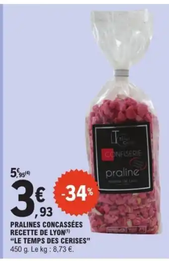 Actuellement en offre chez E.Leclerc : LE TEMPS DES CERISES Pralines concassées recette de lyon ✅ Valable du 3-02 au 14-02.