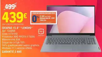Actuellement en offre chez E.Leclerc : Lenovo - ideapad 15.6 ✅ Valable du 27-01 au 8-02.