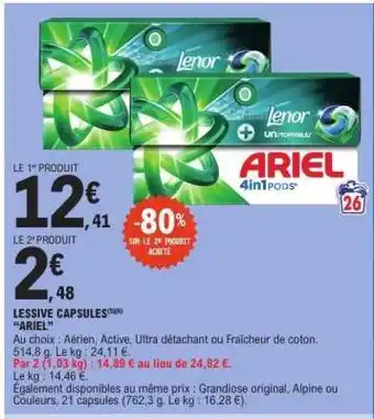 Offre Lessive Capsules Ariel chez E.Leclerc