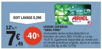 Offre LESSIVE CAPSULES ARIEL PODS chez E.Leclerc