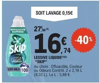 Actuellement en offre chez E.Leclerc : LESSIVE LIQUIDE SKIP ✅ Valable du 20-01 au 31-01.