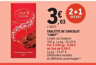 Lindt tablette de chocolat offres et promotions en ligne chez E.Leclerc