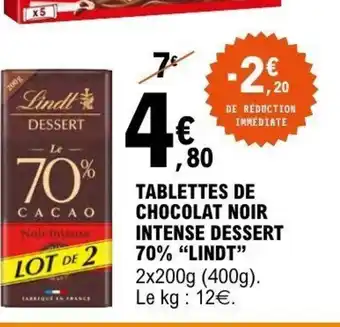Actuellement en offre chez E.Leclerc : LINDT Tablettes de chocolat noir intense dessert 70% ✅ Valable du 16-12 au 28-12.