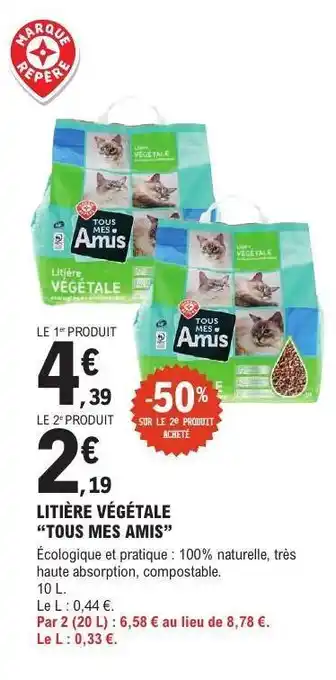 LITIÈRE VÉGÉTALE 'TOUS MES AMIS' : offres et promos E.Leclerc à découvrir
