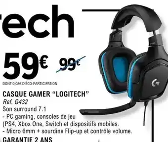 Offre Logitech - casque gamer logitech chez E.Leclerc