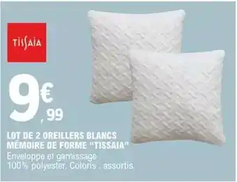 Actuellement en offre chez E.Leclerc : Lot de 2 oreillers blancs mémoire de forme tissaia ✅ Valable du 29-12 au 11-01.