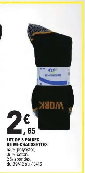 Offre LOT DE 3 PAIRES DE MI-CHAUSSETTES chez E.Leclerc