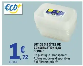 LOT DE 5 BOÎTES DE CONSERVATION 0,6L “ECO+” : offres et promos E.Leclerc à découvrir