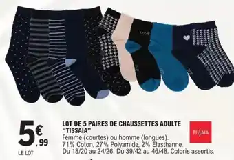 Lot de 5 paires de chaussettes adulte offres et promotions en ligne chez E.Leclerc