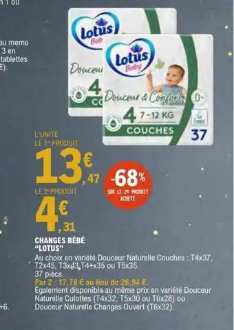 En plus de l'offre LOTUS Changes bébé, E.Leclerc propose une large gamme de produits. Consultez le Catalogue E.Leclerc hebdomadaire pour découvrir les meilleures offres et promotions. En plus de LOTUS Changes bébé, il y a aussi : Changes bébé ultra confort, MOTS D'ENFANTS Changes bébé ultra confort & Matelas lotus.