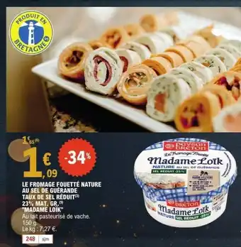 MADAME LOÏK Le fromage fouetté nature au sel de guérande taux de sel réduit 23% mat. gr : offres et promos E.Leclerc à découvrir