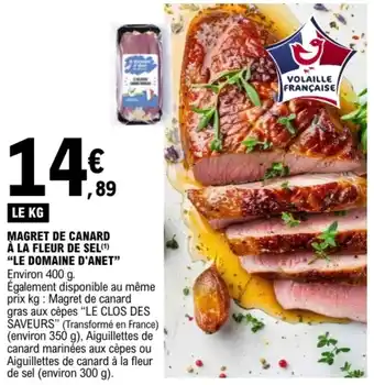 Actuellement en offre chez E.Leclerc : Magret de canard à la fleur de sel le domaine d'anet ✅ Valable du 17-02 au 1-03.