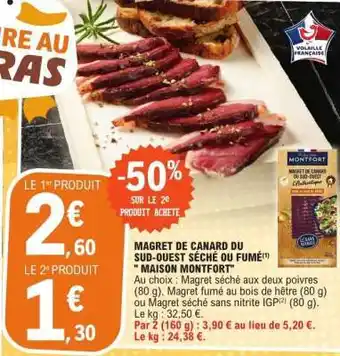 Offre MAGRET DE CANARD DU SUD-OUEST SÉCHÉ OU FUMÉ MAISON MONTFORT chez E.Leclerc