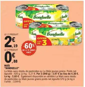 Actuellement en offre chez E.Leclerc : Maïs 'Bonduelle' ✅ Valable du 14-04 au 25-04.