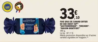 Foie gras de canard entier du sud ouest igp gastronomique torchon maison montfort : offres et promos E.Leclerc à découvrir