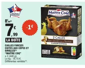 Offre MAÎTRE COQ Cailles farcies cuites aux cèpes et girolles chez E.Leclerc