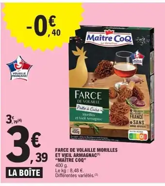 MAITRE COQ Farce de volaille morilles et vieil armagnac : offres et promos E.Leclerc à découvrir