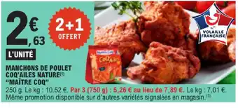 Actuellement en offre chez E.Leclerc : Maitre coq manchons de poulet coq'ailes nature ✅ Valable du 10-03 au 21-03.