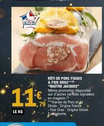 Actuellement en offre chez E.Leclerc : MAITRE JACQUES Rôti de porc figues & foie gras ✅ Valable du 23-12 au 3-01.