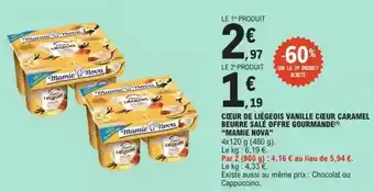 Actuellement en offre chez E.Leclerc : Mamie nova - ceeur de llégeois vanille cœur caramel beurre salé offre gourmande ✅ Valable du 30-12 au 10-01.