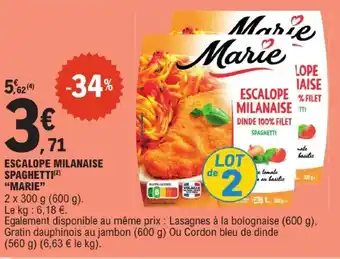 Offre Marie escalope milanaise spaghetti chez E.Leclerc