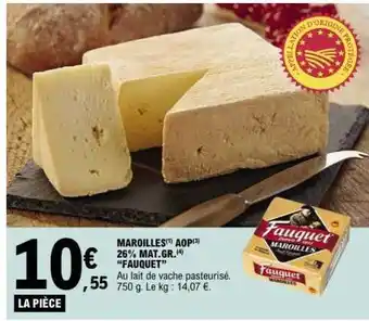 Maroilles AOP Fauquet bénéficie actuellement d'une réduction chez E.Leclerc. Vous trouverez ici toutes les infos utiles sur les prix, la durée de validité et les conditions de l’offre. Pensez à consulter aussi d'autres offres et promotions similaires pour Maroilles AOP Fauquet afin d’acheter toujours au bon prix. La promo Maroilles AOP Fauquet est valable du 03-02-2026 au 14-02-2026. Offre terminée ? Pas de souci. D'autres offres sur ces produits sont peut-être déjà disponibles. Vous pouvez suivre cette catégorie de produits pour rester informé en cas de nouvelle promotion Maroilles AOP Fauquet chez E.Leclerc. En comparant les offres, vous êtes sûr d’acheter au prix le plus bas possible.Questions fréquemment posées au sujet de Maroilles AOP Fauquet