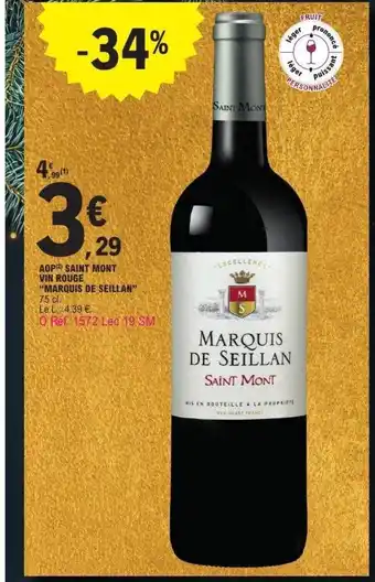 Actuellement en offre chez E.Leclerc : MARQUIS DE SEILLAN Aop saint mont vin rouge ✅ Valable du 16-12 au 27-12.