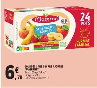 Actuellement en offre chez E.Leclerc : MATERNE Gourdes sans sucres ajoutés ✅ Valable du 23-12 au 3-01.