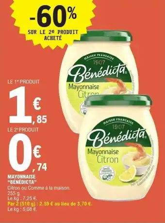 En plus de l'offre Mayonnaise bénédicta, E.Leclerc propose une large gamme de produits. Consultez le Catalogue E.Leclerc hebdomadaire pour découvrir les meilleures offres et promotions. En plus de Mayonnaise bénédicta, il y a aussi : BÉNÉDICTA Mayonnaise, Bénédicta mayonnaise comme à la maison & Mayonnaise comme à la maison bénédicta.