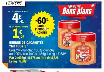 Actuellement en offre chez E.Leclerc : MENGUY'S Beurre de cacahètes ✅ Valable du 16-12 au 28-12.