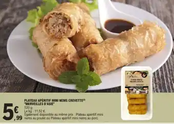 Actuellement en offre chez E.Leclerc : MERVEILLES D'ASIE Plateau apéritif mini nems crevette ✅ Valable du 10-02 au 21-02.