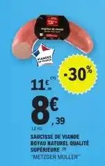 Metzger muller - saucisse de viande offres et promotions en ligne chez E.Leclerc