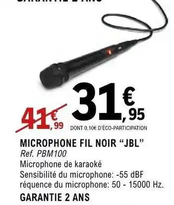 Actuellement en offre chez E.Leclerc : MICROPHONE FIL NOIR “JBL” ✅ Valable du 13-01 au 25-01.