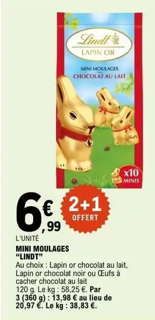 Actuellement en offre chez E.Leclerc : MINI MOULAGES “LINDT” ✅ Valable du 3-03 au 14-03.