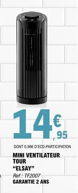 Actuellement en offre chez E.Leclerc : MINI VENTILATEUR TOUR ELSAY ✅ Valable du 13-01 au 25-01.