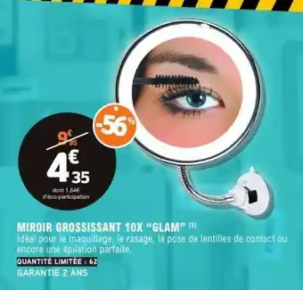 Actuellement en offre chez E.Leclerc : MIROIR GROSSISSANT 10X GLAM ✅ Valable du 7-02 au 22-02.