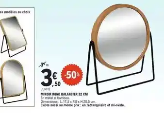 Offre Miroir rond balancier 22 cm chez E.Leclerc