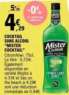 Actuellement en offre chez E.Leclerc : Mister cocktail - cocktail sans alcool ✅ Valable du 13-01 au 25-01.