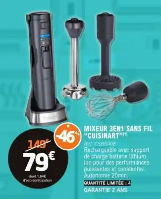 Actuellement en offre chez E.Leclerc : MIXEUR 3EN1 SANS FIL CUISINART ✅ Valable du 7-02 au 22-02.