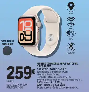 Offre Montre connectée apple watch se 3 gps 40 mm chez E.Leclerc