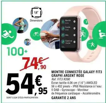 MONTRE CONNECTÉE GALAXY FIT3 GRAPHI ARGENT ROSE offres et promotions en ligne chez E.Leclerc