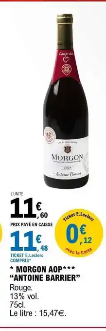 Actuellement en offre chez E.Leclerc : MORGON AOP ANTOINE BARRIER ✅ Valable du 13-01 au 25-01.
