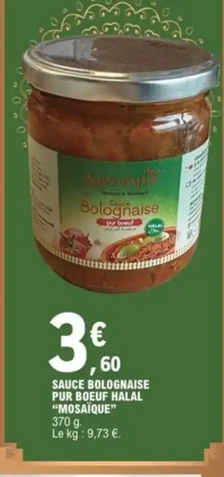 Actuellement en offre chez E.Leclerc : MOSAÏQUE Sauce bolognaise pur boeuf halal ✅ Valable du 3-02 au 21-02.