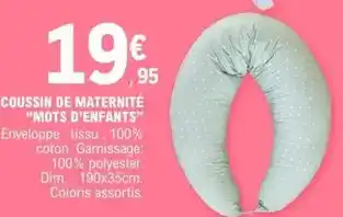 Actuellement en offre chez E.Leclerc : Mots d'enfants - coussin de maternité ✅ Valable du 10-03 au 22-03.