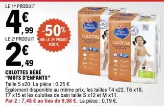 Offre Mots d'enfants - culottes bébé chez E.Leclerc