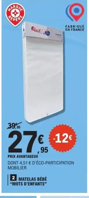 Actuellement en offre chez E.Leclerc : MOTS D'ENFANTS Matelas bébé ✅ Valable du 13-01 au 24-01.