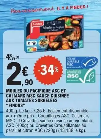 Y a-t-il une promotion sur Moules du Pacifique ASC et Calmars MSC Sauce cuisinée aux tomates surgelées “Findus” la semaine prochaine chez E.Leclerc ?