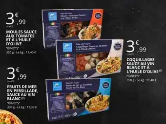 Actuellement en offre chez E.Leclerc : MOULES SAUCE AUX TOMATES ET À L'HUILE D'OLIVE ✅ Valable du 27-04 au 2-05.